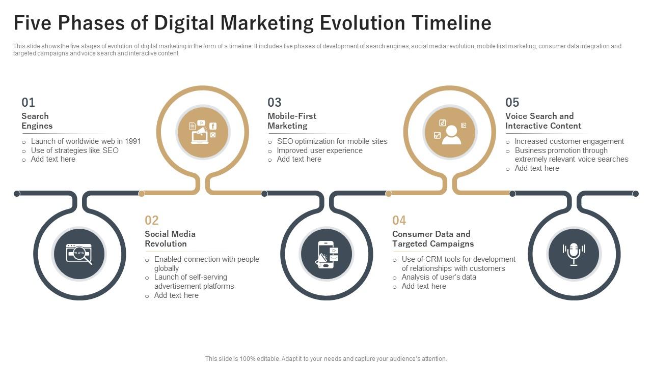 - Evolution means gradual and continuous development over time. Digital marketing evolved as technology, internet access, and customer behavior changed.
