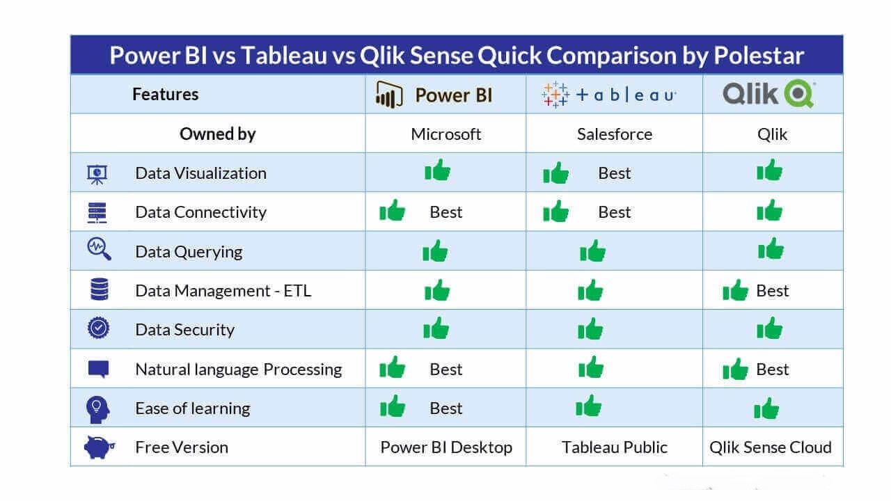 | Developed By | Microsoft | Tableau Software (Salesforce) | Qlik |